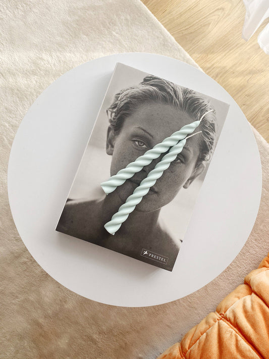 Ice Blue Twirl Candle sticks Set. Vegan, soy.