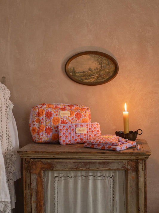 Large Floribunda Cotton Quilted Washbag, Buttermilk