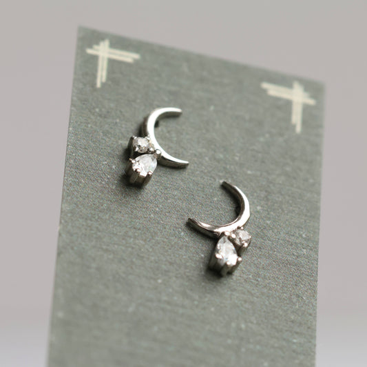 Sterling Silver Moon Stud Earrings