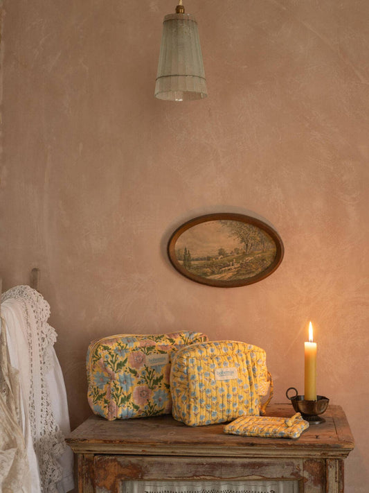 Large Floribunda Zip Pouch, Buttermilk
