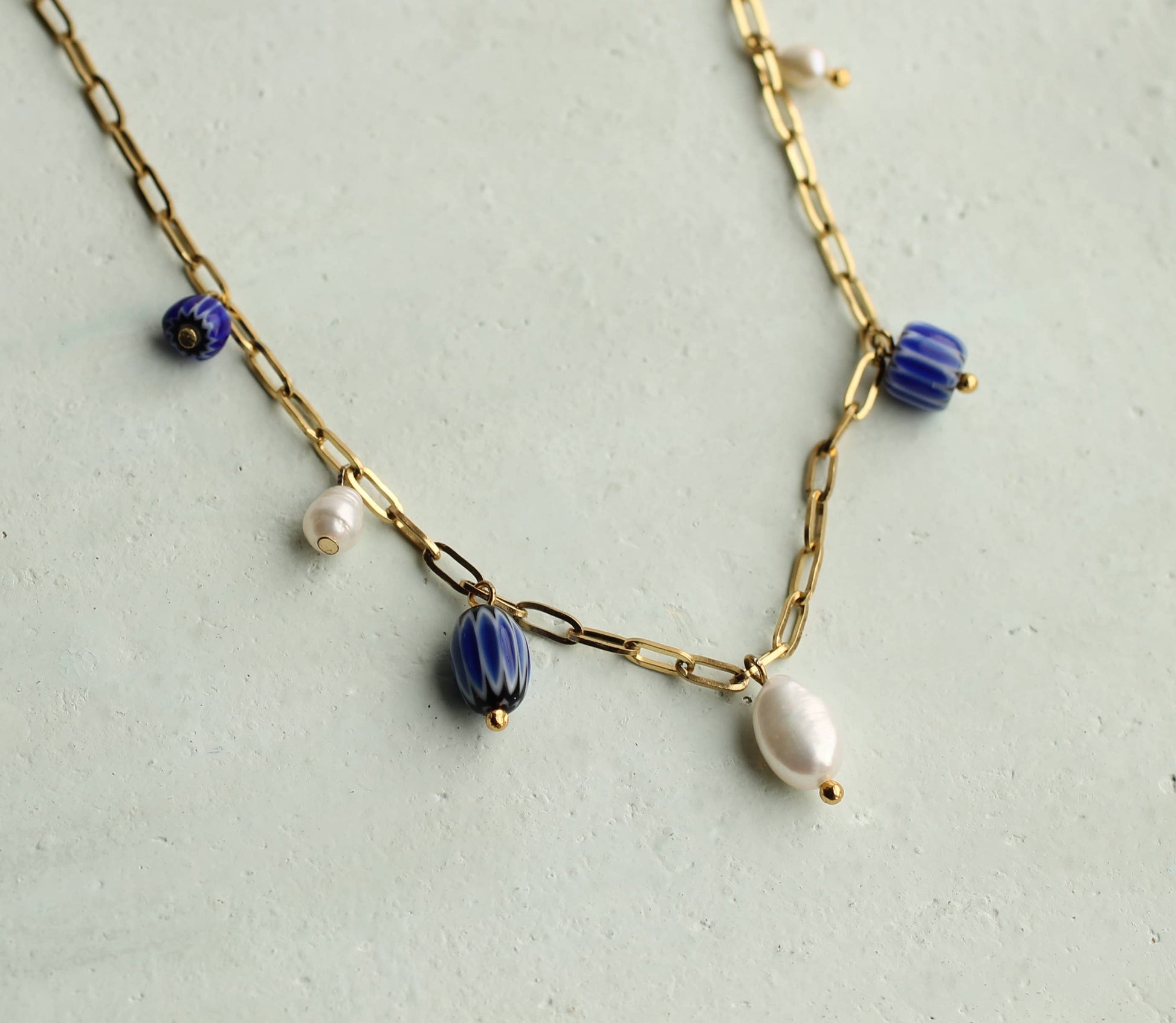 Blue Delft Freshwater Pearl Charm Necklace